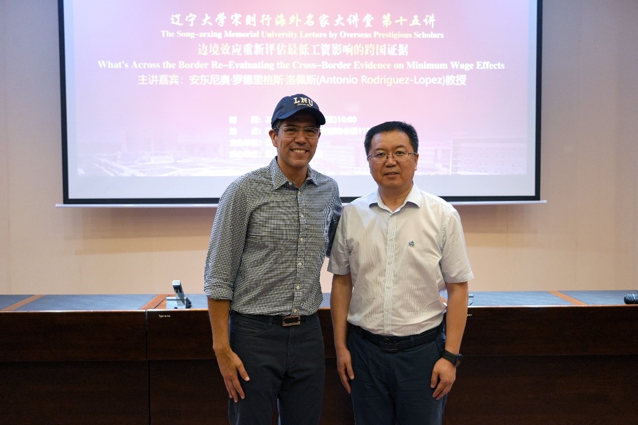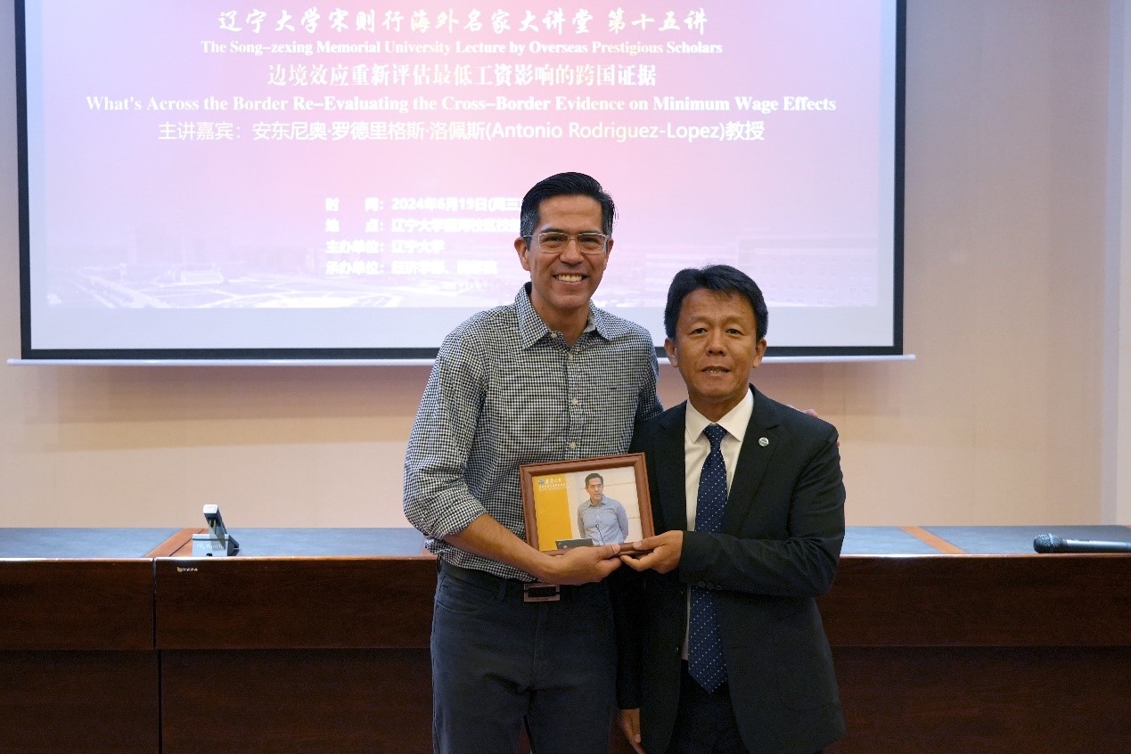 6月19日下午,由经济学部、澳门十大信誉好的网站承办的澳门十大信誉好的网站宋则行海外名家大讲堂(第十五讲)在澳门十大信誉好的网站蒲河校区校部办公楼113室举行。加州大学欧文分校安东尼奥・罗德里格斯・洛佩斯教授应邀作了题为《What's Across the Border? Re-Evaluating the Cross-Border Evidence on Minimum Wage Effects》的学术报告。澳门十大信誉好的网站党委副书记、校长余淼杰教授出席大讲堂并进行了嘉宾介绍。澳门十大信誉好的网站副校长仇焕广教授主持讲座。经济学部120多位师生参加了讲座活动。