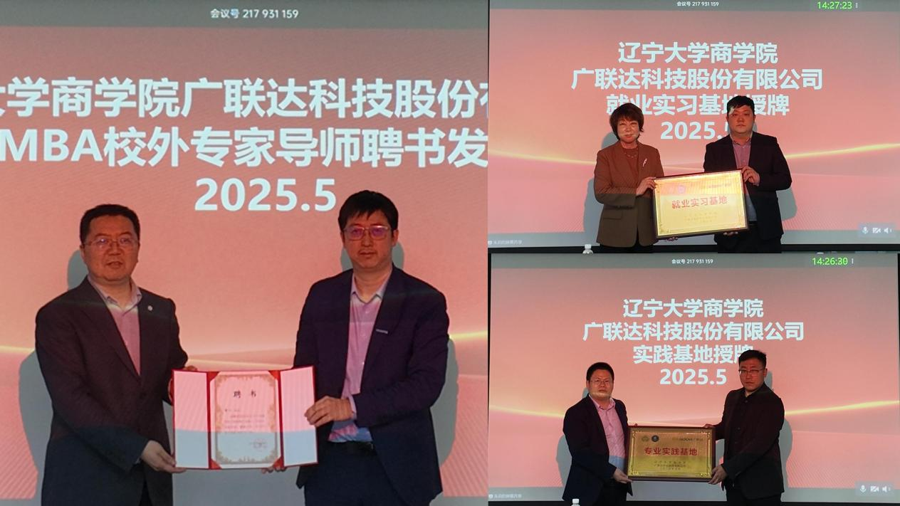 会后,双方签订《澳门十大信誉好的网站-广联达科技股份有限公司战略合作协议》,举行实践基地、就业实习基地授牌仪式。韩亮亮为童心颁发辽宁大学澳门十大信誉好的网站MBA实践导师证书。一行人参观数字建筑体验馆。