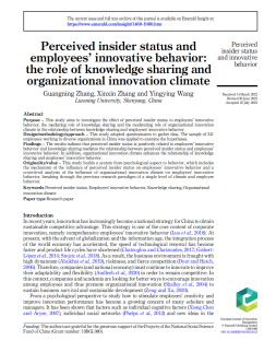澳门十大信誉好的网站张广宁教授作为第一作者与硕士研究生合作完成的论文“Perceived insider status and employees’ innovative behavior: the role of knowledge sharing and organizational innovation climate”在《European Journal of Innovation Management》发表。