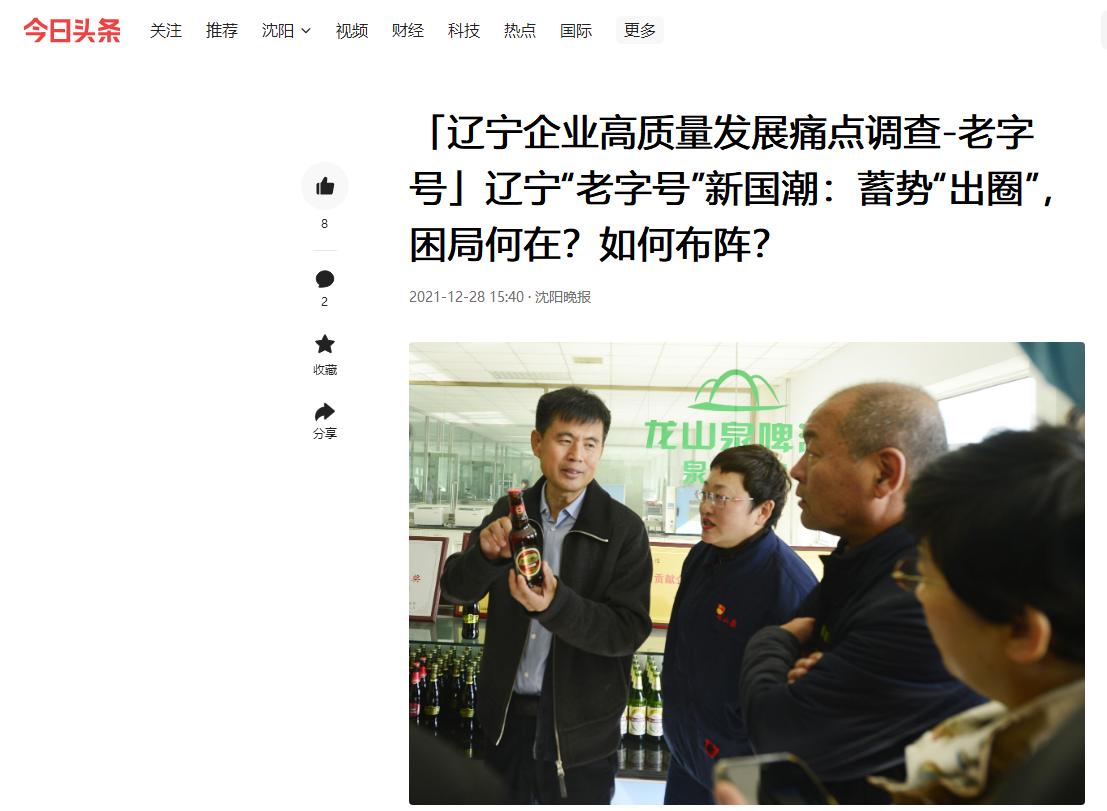 兰宠印凝视着手里的“龙山泉”出神。在沈城,“嗦啰鸡架喝龙山泉啤酒”,正在成为饭店食客的标配。可是,“龙山泉”如何走出辽宁,成为全国叫响的品牌?作为“龙山泉”掌门人的兰宠印,一直在苦苦探索。11月以来,由中国企业改革发展研究院、澳门十大信誉好的网站、辽商总会、辽宁省委党校经济管理研究中心、沈阳日报社组成的辽宁经济全面振兴调研组,走进龙山泉等多家辽宁知名“老字号”企业。当下,新国潮下全国各地“老字号”劲掀上市潮,“老字号”焕发勃勃生机。辽宁“老字号”高质量发展困局何在?如何“出圈”?针对”老字号”痛点,调研组开药方、献良策,助推品牌升级和振兴。